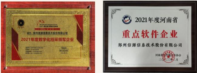 ➤2022年2月,“信源电子商城平台V4.0”、“信源国企电子招标采购平台V4.0”被河南省软件服务业协会评为“2021年度河南省优秀软件产品”。