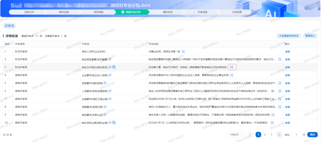 ✔ 招标文件一键定位:点击解析后的评审项,直接跳转至招标文件原文位置;